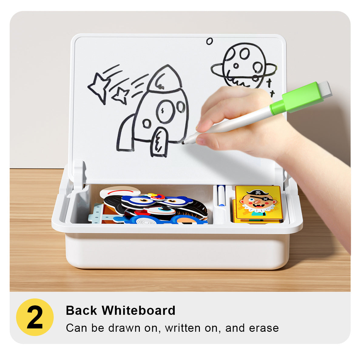 Dieses pädagogische Spielzeug trainiert die Hand-Auge-Koordination, regt die kreative Vorstellungskraft an und hilft Kindern, ein besseres Verständnis für Gesichtszüge, Formen und Rollenbilder zu entwickeln.